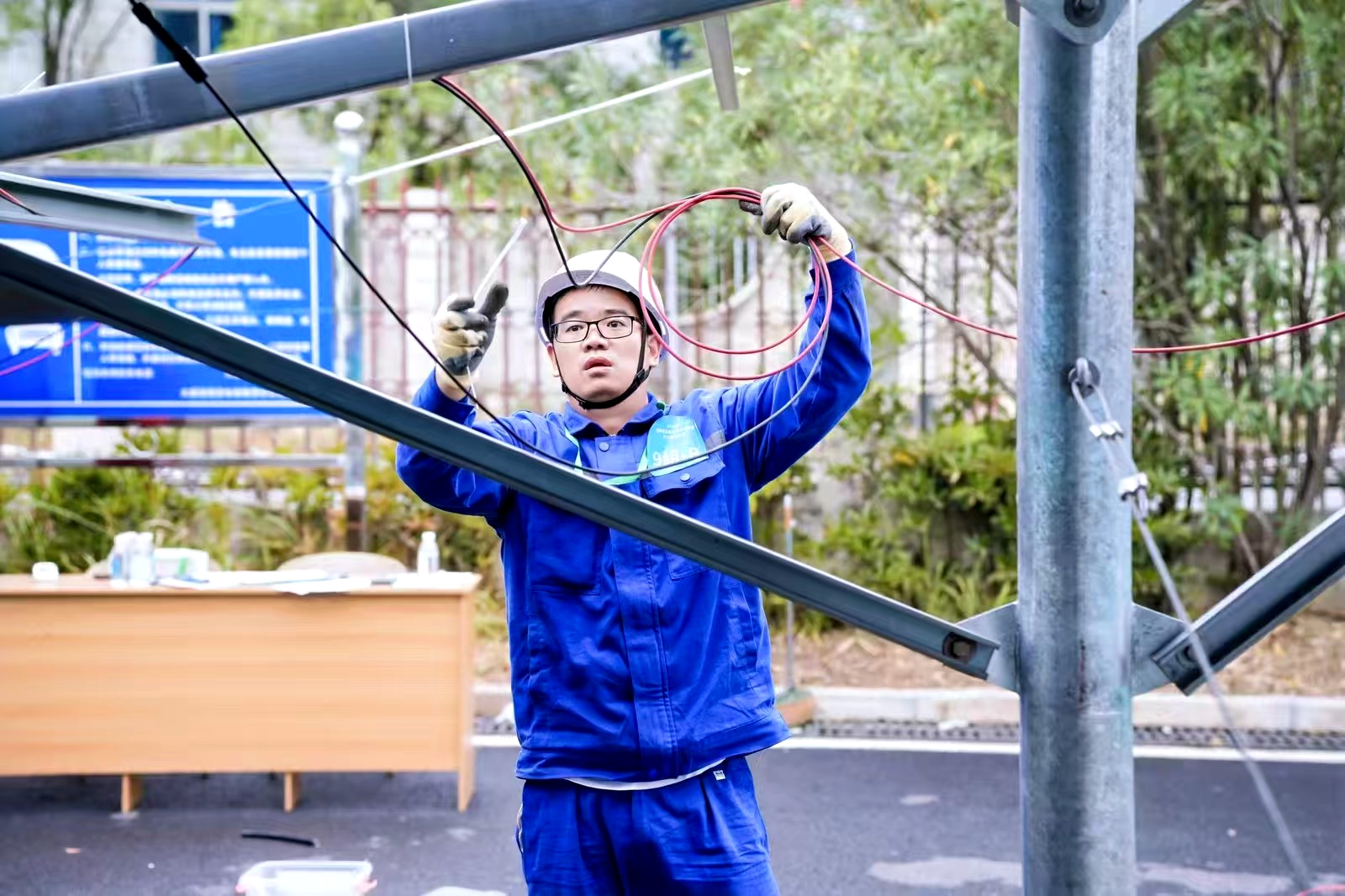 技能競賽是檢驗實力的“試金石”,胡善喜始終保持“歸零”心態。在競賽中精進技藝,他成為大家口中的“獲獎專業戶”。2018年,他首戰冷水江市職業技能競賽獲電工二等獎;2019年,參加集團公司電氣專業競賽獲評“集團公司優秀技能選手”;2023年,在湖南省維修電工競賽中拿下個人二等獎。隨著新能源產業發展,胡善喜敏銳意識到“傳統火電技術不能丟,新能源技術必須學”。2024年,他主動開啟光伏運維知識學習之路,將當年鉆研火電技術的勁頭悉數拿出:白天跟著光伏運維團隊駐守現場,熟悉逆變器、電池板的構造和原理;晚上對著資料啃專業術語,反復琢磨調試流程。短短半年,他便掌握了光伏運維逆變器調試、光伏板檢測等核心技能,在大唐華銀光伏運維專業競賽中再度獲評“大唐華銀技術能手”,實現從“火電骨干”到“光伏尖兵”的跨界突破。2025年,湖南省首屆光伏發電運維競賽,成為檢驗他跨界成果的最佳舞臺。理論考試中,他對答如流,每個知識點都爛熟于心;實操環節,逆變器調試、故障排查一氣呵成,最終成功摘得個人一等獎。“每一次競賽都是成長,肯學肯鉆,就沒有跨不過的坎。”胡善喜用行動證明,只要有不服輸的勁兒,就能在新領域闖出一片天。