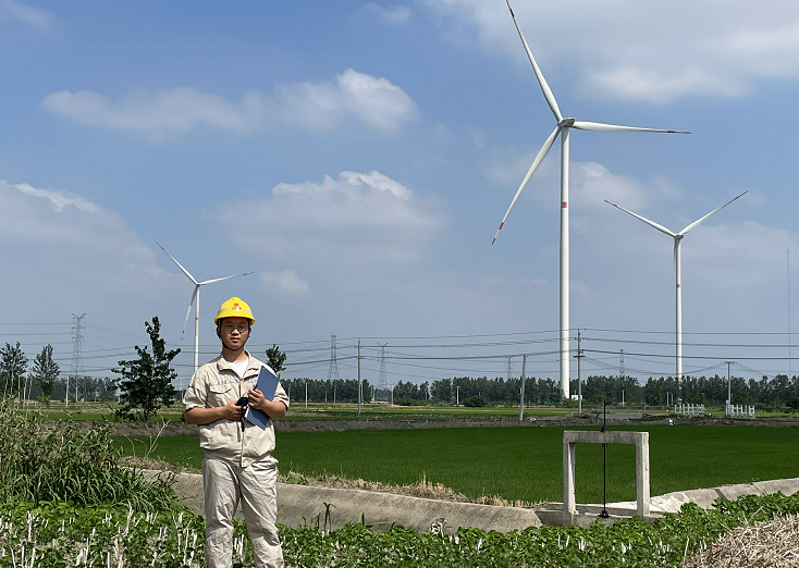 去年夏天,我離開校園,走進射陽風電場,看三枚葉片在藍天與白云間緩慢而有力地揮舞,腦海中突然閃過一句話:留下“綠水青山”,帶來“金山銀山”——是的,我成了一名電力人,從此不再是遠觀風車的游人。